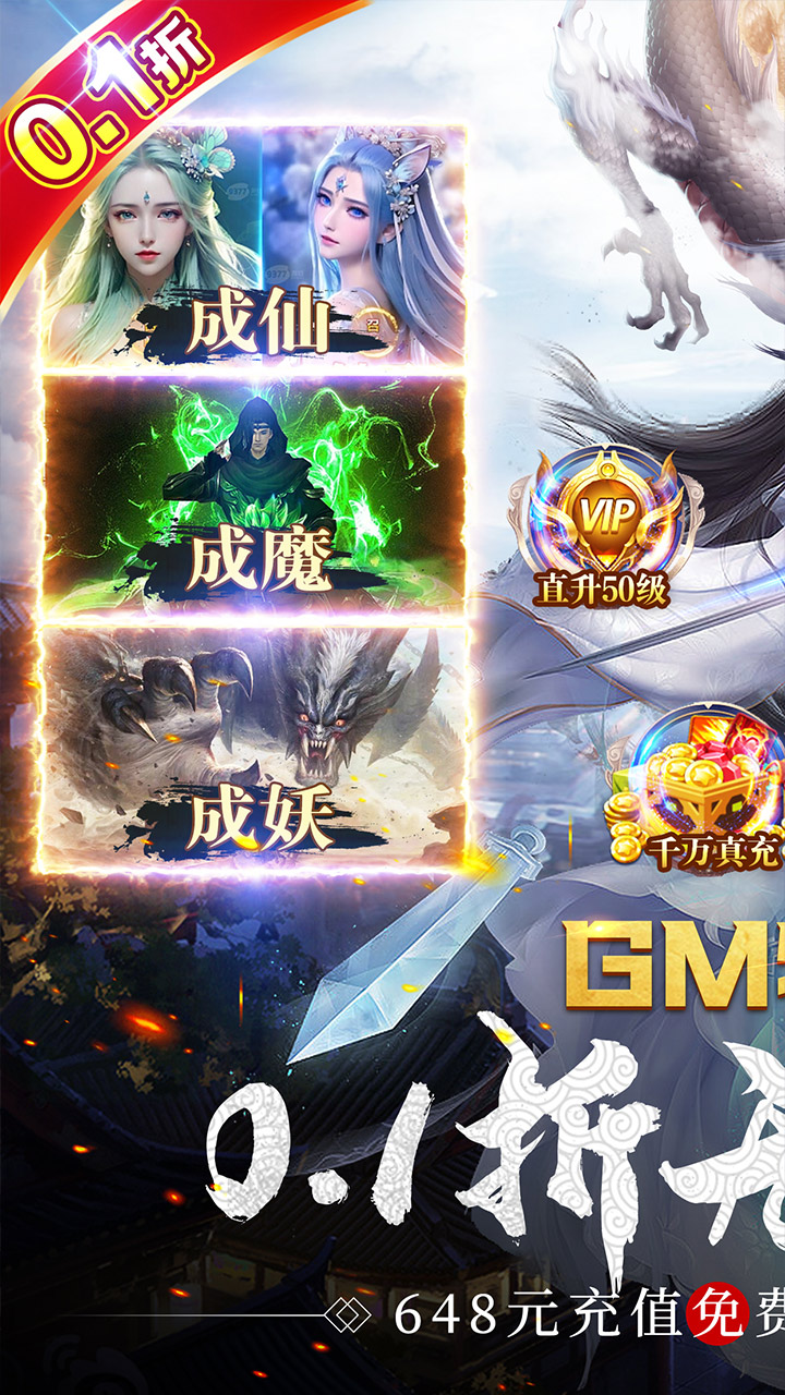 ★王道开局送满V,万抽礼包,绝品破解工具100万刷充称号